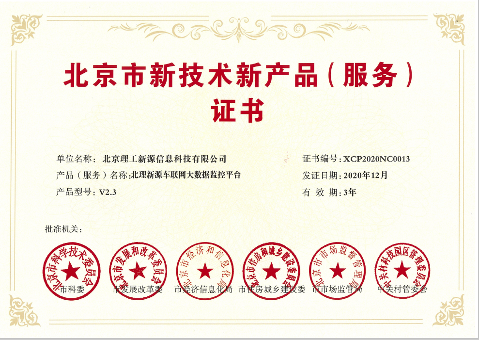 截至目前,北理新源累计申请专利 123 项,获得专利授权70项(发明专利授权 56 项,实用新型专利授权 10 项,外观设计专利授权4 项),登记软件著作权 90 项,涵盖新能源汽车领域的云计算、大数据、人工智能、边缘计算、多云协同等多个核心技术方向。公司的“新能源汽车网联大数据平台关键技术及国家监管体系建设”荣获 2019 年度北京市科学技术进步一等奖。2020年、2022年,北理新源多个产品入选北京市新技术新产品(服务)。