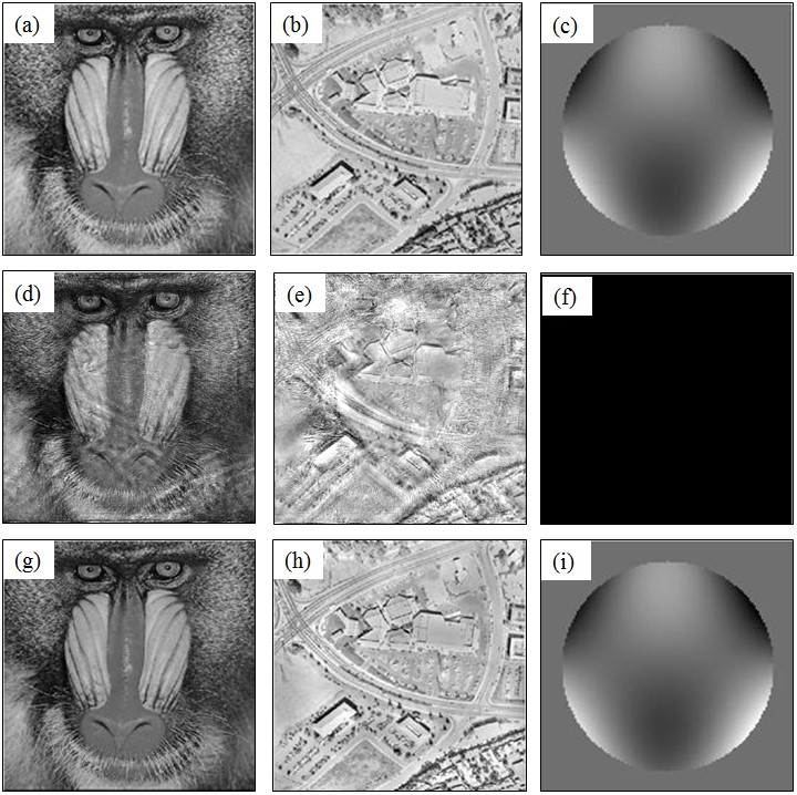针对传统傅里叶叠层显微成像引入的各种像差,北京理工大学许廷发教授科研团队提出了一种新颖的基于叠层衍射成像技术的像差校正方法。该方法结合了仿真和实验验证,并应用于人体血细胞的显微成像。主要利用叠层衍射成像技术的优化策略对傅里叶叠层显微成像重建进行改进。在更新成像过程中的频谱和光瞳函数时,针对传统更新策略因仅仅依赖频谱和光瞳函数最大值而对突变敏感的局限性,创新性地引入更新因子自适应调控最大值和当前值之间的最佳比例,从而有效避免突变的影响,提高系统成像的清晰程度。将泽尼克多项式系数假定为空间变化的函数,以仿真空间变化的像差,利用提出的方法重建泽尼克多项式系数,并对加载混合像差的仿真图像以及实际采样的人体血细胞图像进行重构。实验结果表明,本文方法可以准确重建像差系数。此外,重构图像清晰度显著提高,可以准确分辨细胞轮廓。加载混和像差的仿真实验结果如下。图2 (a)-(c)依次为原始强度图,相位图和光瞳函数,(d)-(f)依次为未更新光瞳函数策略的重建结果,(g)-(i)为利用本方法的重建结果。可以看出,在混合像差的影响下,传统的未更新光瞳函数的重建图像较为模糊。采用本文光瞳函数更新方法后,图像重建结果清晰度有明显提高。