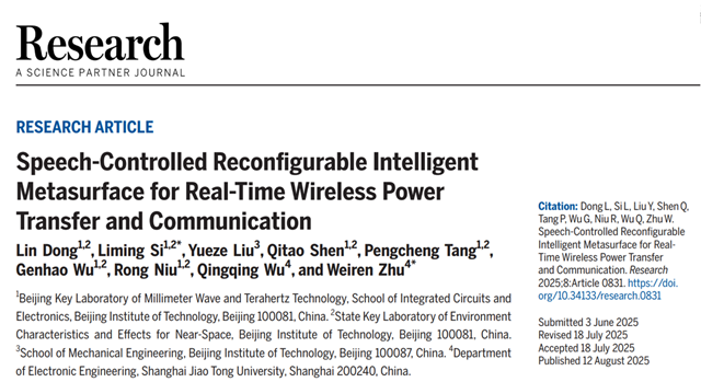 北理工课题组在语音控制无线供能与通信技术方面...2025-08-14 -