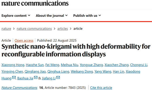 北理工团队在纳米剪纸像素化可重构信息显示方面...2025-08-28 -
