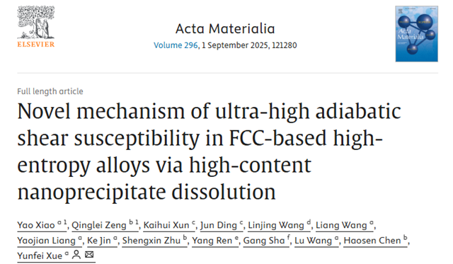 北理工在共格纳米析出相强化高熵合金的绝热剪切...2025-07-01 -