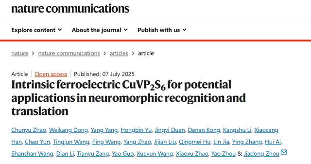 北理工团队在二维铁电材料CuVP2S6的直接...2025-07-11 -