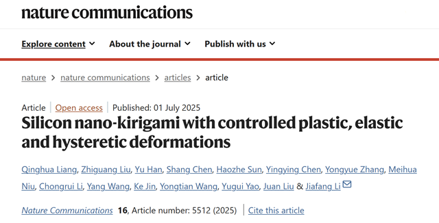 北京理工大学团队在硅基纳米剪纸结构形变调控方...2025-07-13 -