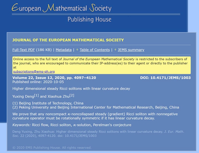北理工在稳态型里奇孤立子的分类研究方面取得研...2021-01-12 -