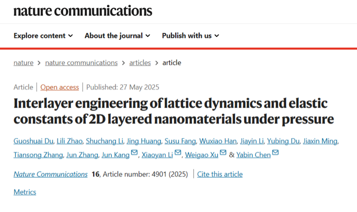 北理工课题组在二维材料层间耦合高压调控方面取...2025-05-29 -