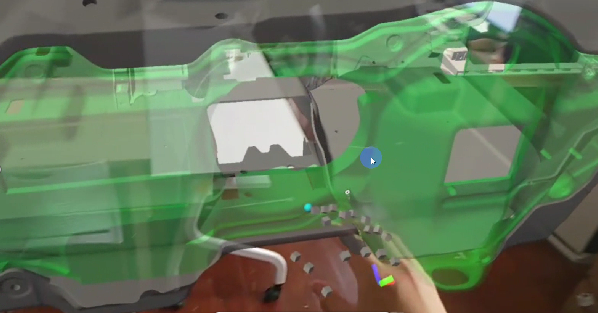 在装配工艺的仿真和检验中,尤其针对在汽车、飞机等大型复杂产品,手动装配过程的干涉检查是十分重要的环节。主要检验在实际装配过程中,工人能否有足够的操作空间可以完成设计的装配任务。由于涉及到大量的零部件,以及人体复杂的手部动作,因此在当前被广泛应用的工业软件中难以完成仿真和模拟计算。基于虚拟现实技术的系统,将自然的双手作业过程、直观的反馈与立体三维模型集成到装配工艺仿真过程中,但仍然存在不足之处:(1)纯虚拟的装配场景与真实的装配环境之间仍然存在差距,并不能真正地模拟装配环境的影响;(2) 在纯虚拟环境中,用户对真实环境的感知等将受到封闭和限制,而且会造成“晕动症”等不好的使用体验。