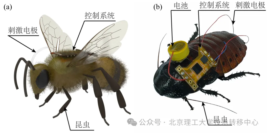 图2. 半机械昆虫:(a)蜜蜂;(b)蟑螂