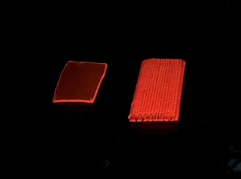 图2.普通块体与具有微结构器件的荧光图片对比