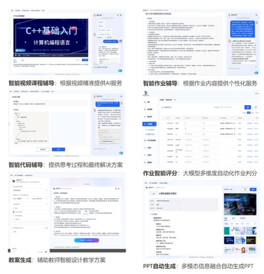本成果已经在高校、职教以及企业培训等多种场景形成了智能教育解决方案。通过大模型进化的思想不断提升领域大模型的核心能力,继续增强教育大模型的底层能力,支持教育领域中多种复杂场景需求。依托领域大模型、自主进化和慢思考推理增强等核心算法,提供了智能教案生成、PPT自动生成、自动考题生成、作业指导与评估、AI伴学、AI助教、视频课程辅导、编程指导等一站式功能。与开源模型以及闭源通用模型相比,本成果转化的教育领域大模型可以生成更专业、更详细、更符合场景应用的内容。