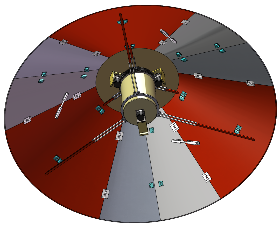 为了在非工作状态下节省空间,节约运输成本,该成果提供了一种绳索及连杆联合驱动的可折展伞状天线,其在非工作状态下,由电机驱动实现二级折叠,大幅缩小天线体积,工作状态下,天线可分别在电机及弹簧作用下恢复展开,同时,该折展机构还设计了天线展开的锁定组件,保证天线展开后具有较高的稳定性和刚度。