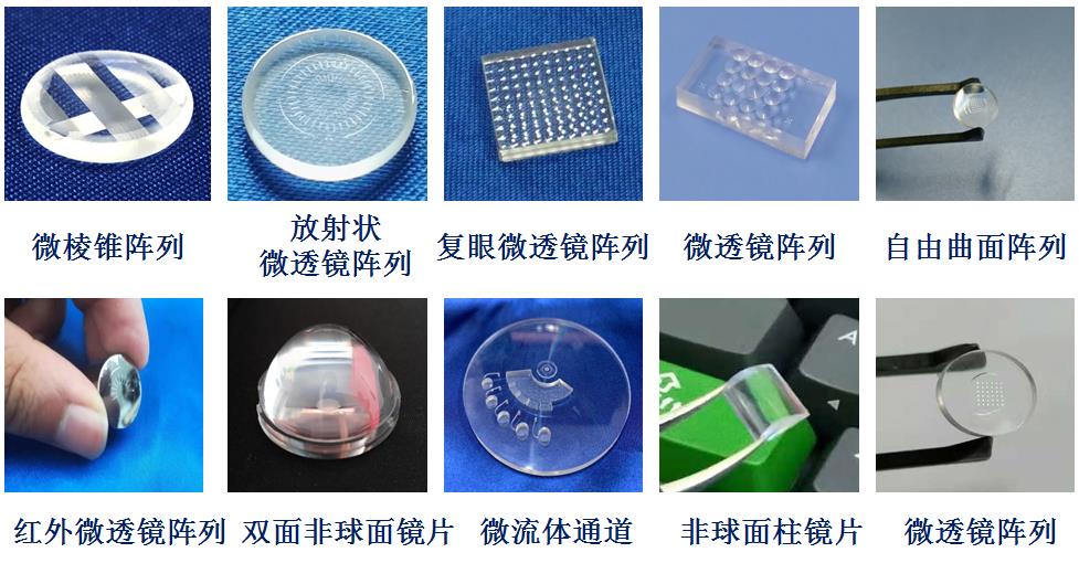 可用于手机曲面屏热弯成形,非球面、自由曲面玻璃透镜模压成形,光学微结构、微透镜阵列模压成形,生物医疗微结构玻璃器件成形,光通信微结构成形等。