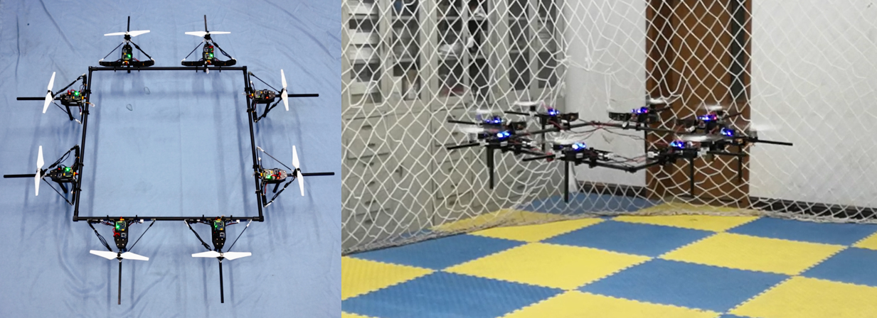 “毓”旋翼是一种模块化多旋翼无人机,系统构建了一种新型多旋翼无人飞行平台,设计了简单可靠的连接结构。由于单个飞行模块具有独立的动力系统和控制系统,本项目在此基础上提出了多模块的协同控制算法并给出了区别于常规多旋翼构型的多种模块排布方式。此外,还能够基于冗余传感器数据研究了数据融合算法以提高传感器精度。