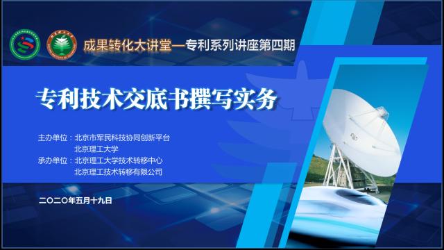 2020年5月19日上午,由北京市军民科技协同创新平台和北京理工大学联合主办的“成果转化大讲堂”——专利系列讲座第四期成功举行。本次讲座继续采用线上直播形式开展,邀请北京科慧远咨询有限公司高级专利顾问刘玲,以“专利技术交底书撰写实务”为主题进行讲解。讲座得到校内外三百多位科研工作者的关注与参与。