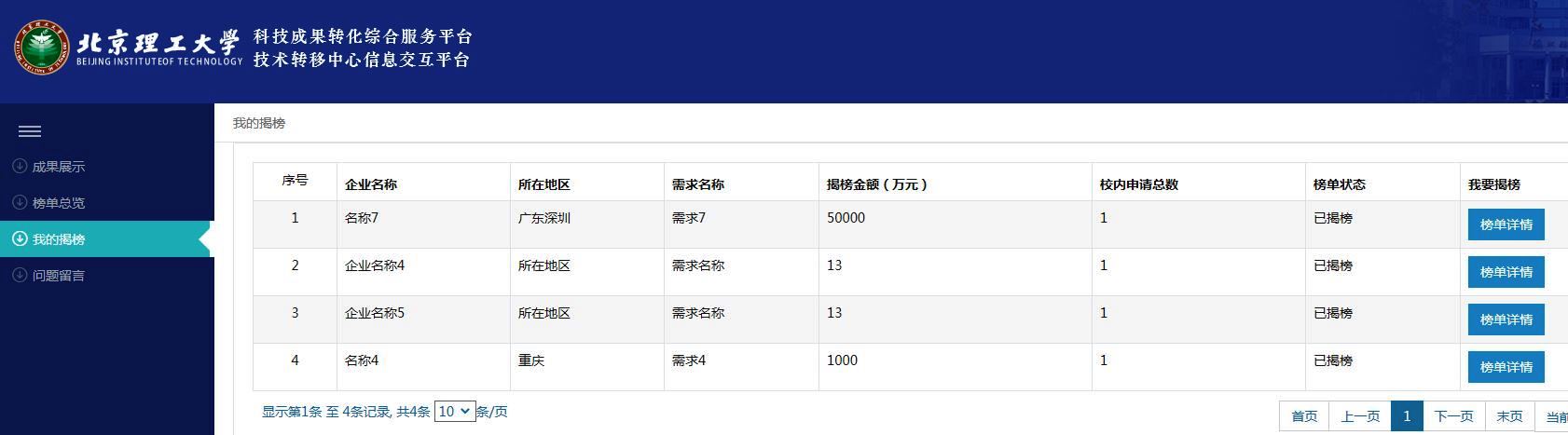 图4:揭榜人成功揭榜后查询已揭榜榜单